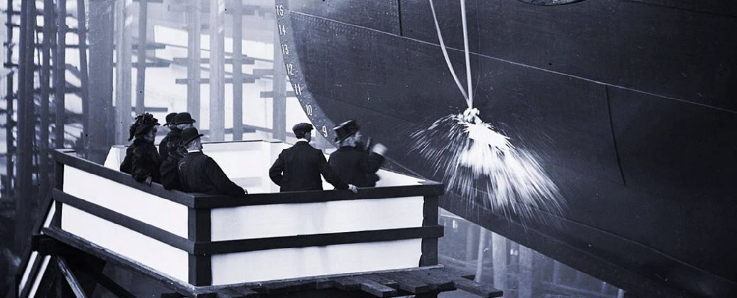 Pre korene tejto tradície musíme nahliadnuť hlboko do histórie: Vikingovia vraj spustenie novej lode na vodu spájali s ľudskými obeťami, v snahe vykúpiť si takto od bohov ochranu plavidla a jeho posádky. Babylonskí bohovia sa uspokojili s volskou krvou a starovekí Gréci pri inaugurácii popíjali víno s olivovými vencami na hlavách a novú loď žehnali čistou vodou. V stredoveku sa na krstenie lodí začalo používať červené víno, ktoré sa lialo priamo do vody z veľkého kovového kalicha. Cirkev však proti tomuto zvyku prejavila výhrady, ako urážku kreťanských sviatostí. Z toho dôvodu bolo preto červené víno nahradené bielym.