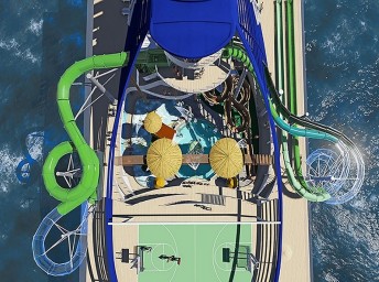 "360° Waterfront boardwalk" – promenáda okolo celej lode, ktorej súčasťou je prechádzka cez priehľadnú podlahu pre ešte väčší zážitok z plavby.