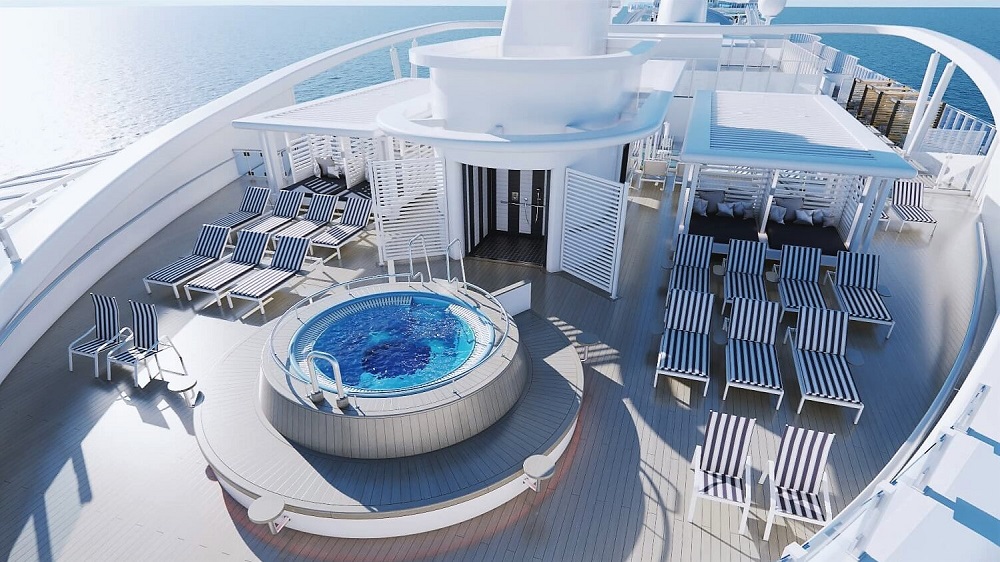 Na otvorených palubách sú až 4 bazény, z ktorých jeden so slanou vodou. Hostia túžiaci po športe majú k dispozícii plne vybavené fitness centrum s najmodernejším Technogym zariadením a multi športové ihrisko s výhľadom na more.