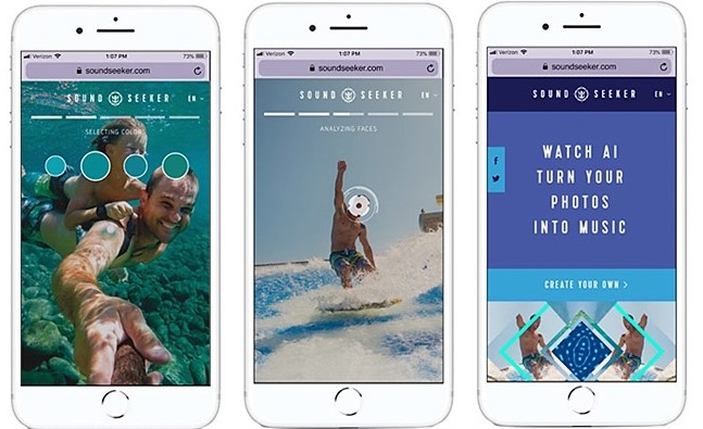 Presvedčte sa o tom sami - otvorte si https://www.royalcaribbean.com/soundseeker - k dispozícii na aj telefóne! Stiahnite si 3 fotografie podľa vlastného výberu a aplikácia ich analyzuje podľa farby, prostredia, pozadia, emócií a výrazov na tvárach, ako aj podľa reči tela. A potom ako virtuálny Dj tieto informácie spracuje do jedinečného zvukového záznamu a videa.