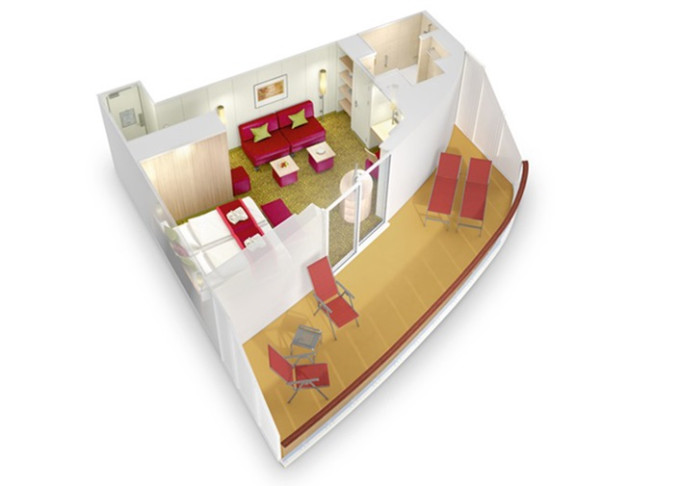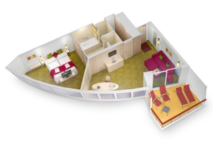 SX - Suite Panorama-Deluxe PREMIUM 54 m² (vrátane balkóna 12 m²). 12. paluba. Max 4 osoby. Cenový model Premium + výhody Suite. | 3 780 € 1 890 € za osobu |