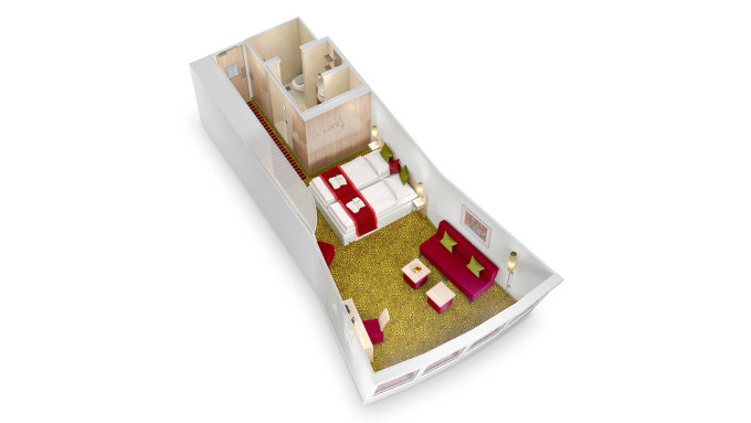 SD - Junior Suite PREMIUM od 24 m² + balkón 10 m². 7,8. paluba. Max 4 osoby. Cenový model Premium + výhody Junior Suite. | 2 970 € 1 485 € za osobu |