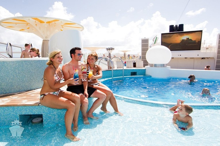 - Používanie zariadení lode: bazény, vírivky a lehátka, sauna*, plážové osušky, moderné fitnescentrum ...