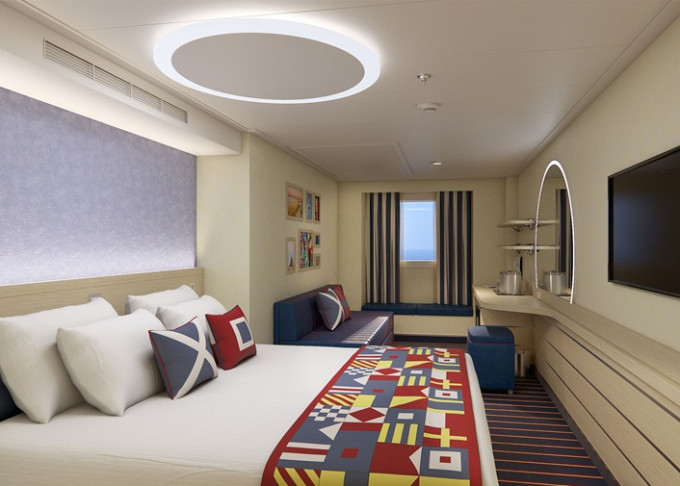 FE - Vonkajšia kajuta Family Harbor 22 m². Neotvárateľné okno / obmedzený výhľad. 4. paluba stred, vzadu. Námorný štýl, špeciálne služby pre rodiny s deťmi. 1 216 € 608 € za osobu
