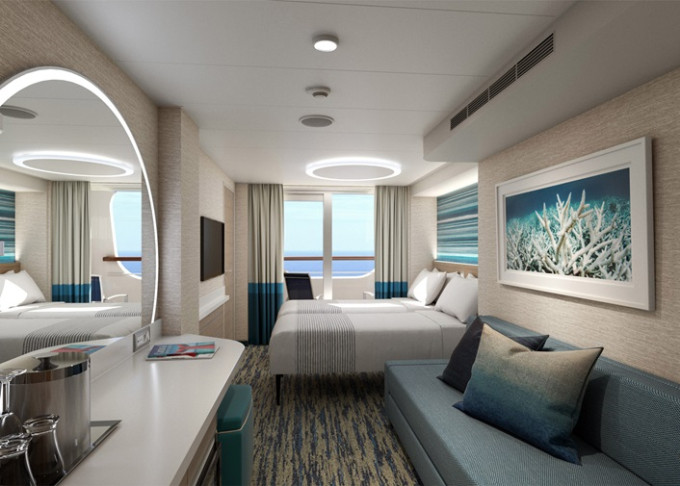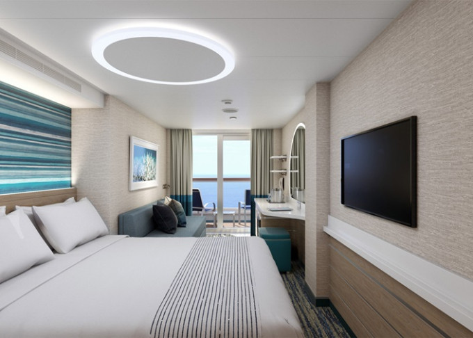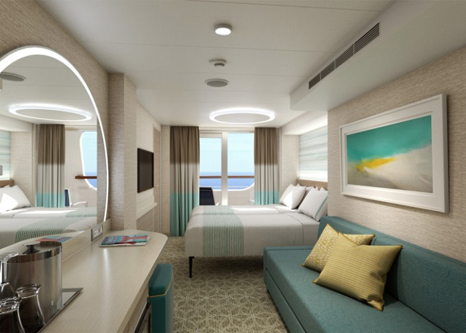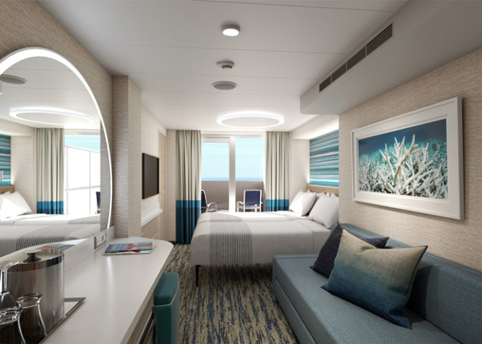 7C - Kajuta s balkónom Cove 19 m² + balkón s chráneným výhľadom 4 m². 5. paluba. 1 410 € 705 € za osobu