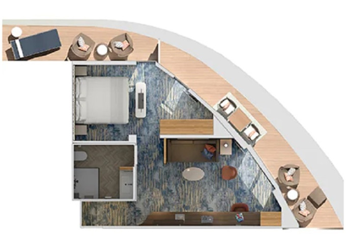 SS - Suite Cloud 9 Spa 27 m² + balkón 5 m². 17. paluba vpredu. Výhody Suite. Voľný vstup do Spa a balíček Cloud 9 Spa. 2 224 € 1 112 € za osobu