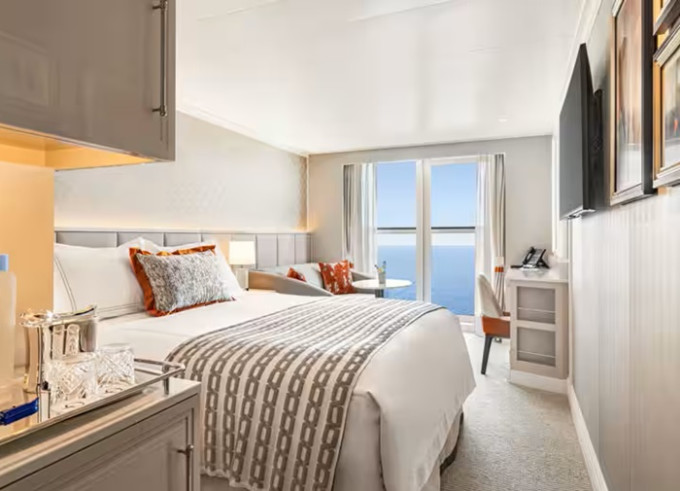 - Owner’s Suites: súkromný obed v apartmáne od 12:00 do 14:00 (voliteľné) v deň nalodenia