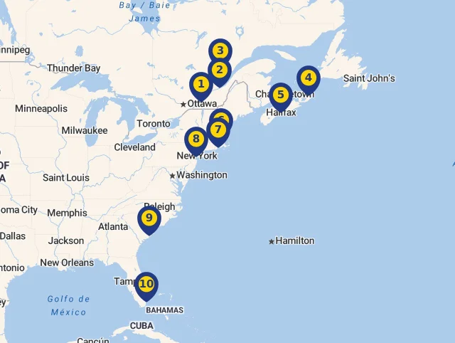 Spoznajte miesta, kde Vaša loď počas plavby zakotví! Každá zastávka je označená číslom, ktoré zodpovedá jej pozícii na mape, aby ste mohli jednoducho sledovať celú trasu. Stačí kliknúť na vybranú destináciu a zistíte viac o každej z nich. Pre ešte lepší prehľad si môžete celý program plavby prezrieť priamo na mape.