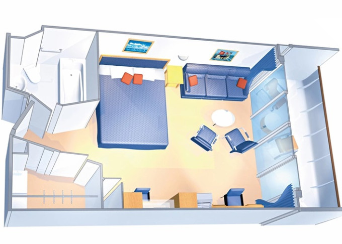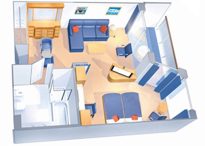 VT - Ocean View Suite / 2 spálne (bez balkónu) 55 m². Celoplošné neotvárateľné okná. Max 8 osôb. Výhody Suite. | 1 993 € 1 993 € za osobu |