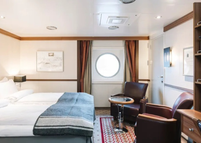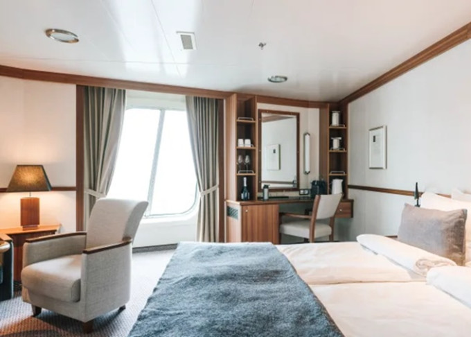 F4 - Vonkajšia kajuta Arctic Superior 22-23 m². Neotvárateľné okno / môže byť obmedzený výhľad.Tv, varná kanvica. Upper paluba. Max 4 osoby. | 19 494 € 9 747 € za osobu | ||