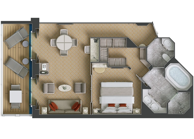 SV - Superior Veranda Suite 30 m² + balkón 6 m². 7,8,9. paluba. Max 3 osoby. | 13 475 € 13 475 € za osobu | ||