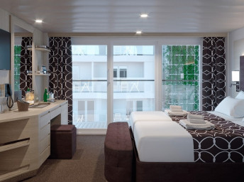 Vonkajšie kajuty Infinite s panoramatickým zasúvacím oknom, ktoré sa po otvorení zmení na sklenenú balustrádu.
