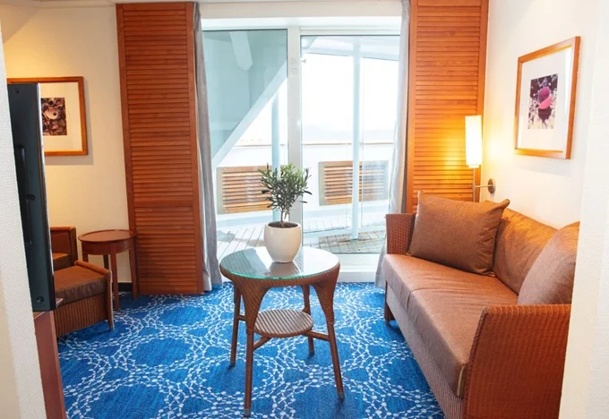 SJB - Junior Dream Suite s balkónom kajuta 21 m² / balkón 6 m² . Max 3 osoby, 9. paluba. Stolovanie vo vyhradenej časti reštaurácií Smoked Olive a Pink Moon. 2 498 € 1 249 € za osobu