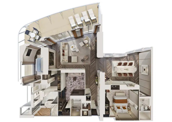 H2 - The Haven Deluxe Owner's Suite 197 m² / balkón 45 m². 18. paluba vpredu. Max 6 osôb. Výhody The Haven. | 15 452 € 7 726 € za osobu |