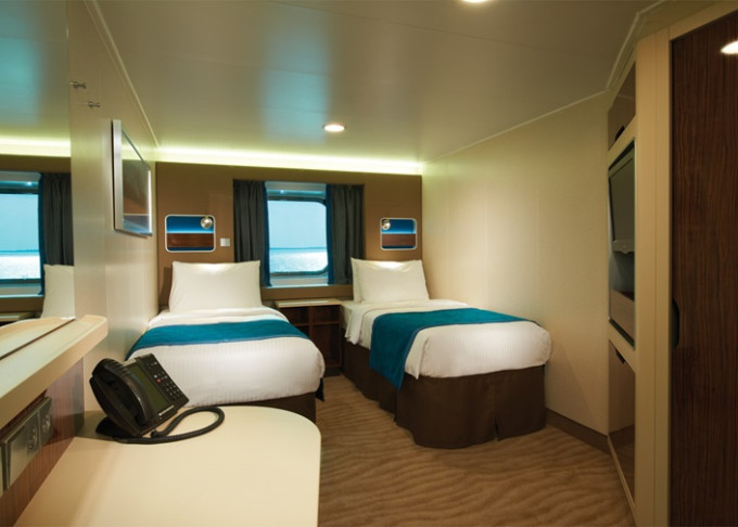 OB - Vonkajšia kajuta s veľkým oknom od 14 m². Veľké neotvárateľné okno. 5. paluba. Max 2-5 osôb. | 1 200 € 600 € za osobu | ||