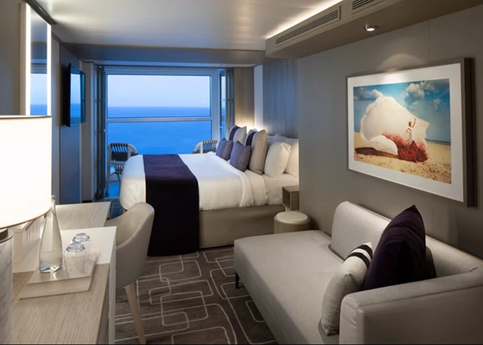 - Kajuty sú umiestnené v blízkosti lodného Spa. K ich vybaveniu patrí posilnený systém vzdušnej filtrácie, posteľ Queen-Size (v kategóriách Edge King-Size), veľké zasúvacie sklenené dvere, exkluzívne posteľné prádlo eXhale®, veľkorysé skladovacie priestory.