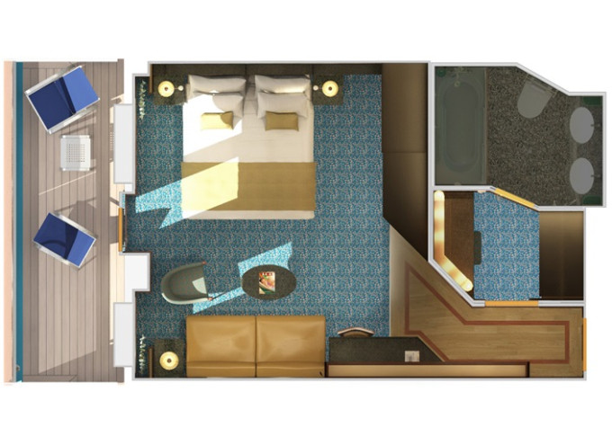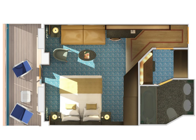 8S - Kajuta s balkónom Cloud 9 Spa 17 m² + balkón 3 m². 12. paluba vpredu. Voľný vstup do Spa a balíček Cloud 9 Spa. | 2 112 € 1 056 € za osobu | ||