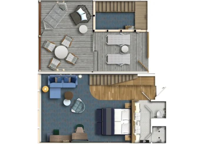 | JKAO - Junior Suite s balkónom 26 m² + balkón 7 m² so stolom. . paluba. Max 4 osoby. Výhody Junior Suite. | 13 998 € 6 999 € za osobu | ||