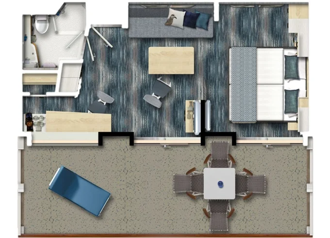 | JKAO - Junior Suite s balkónom 26 m² + balkón 7 m² so stolom. . paluba. Max 4 osoby. Výhody Junior Suite. | 15 496 € 3 874 € za osobu | ||